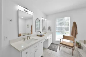 Beautifully renovated waterfront home ON Lake Conroe! Just minutes to Margaritaville and seconds to open water, come enjoy all that the lake has to offer! Recently remodeled 3 bd, 3 ba home with an extra 1 bd/ 1 ba CASITA! An open floor plan allows for great conversation with family and friends. Large windows and double doors overlook the huge deck that offers space for several seating arrangements. Kitchen has quartz countertops, stainless steel appliances and timeless subway tile backsplash. First floor guest bedroom and full bath, second floor primary bedroom and ensuite with another guest bedroom and full bath. Casita is around 300 sq ft and includes a small kitchenette, full bath and loft area. New roof, a/c, siding and exterior paint done along with renovations in 2023. Never flooded! Cape Conroe amenities include a neighborhood pool, clubhouse, park, basketball court and boat ramp to Lake Conroe. Montgomery schools.